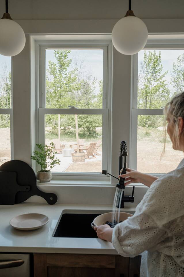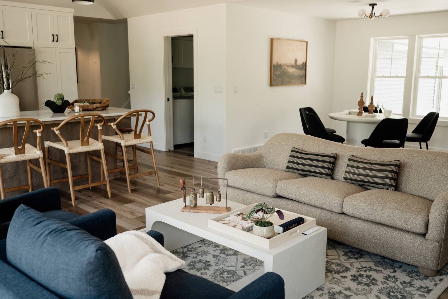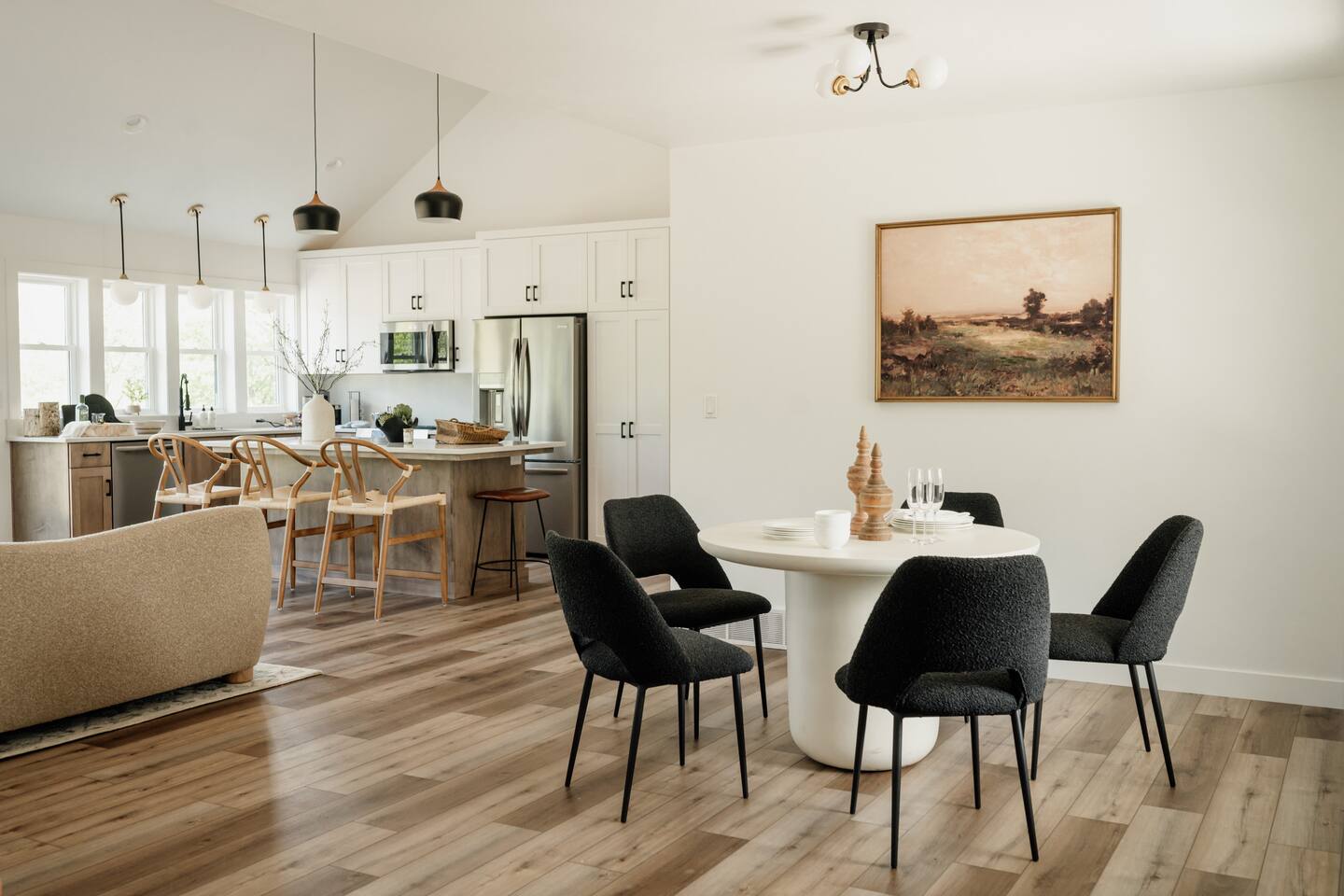 Retreat Azure is located in the picturesque town of Egg Harbor, Wisconsin. Nestled amidst the scenic beauty of Door County, our property offers a luxurious retreat for your vacation. As you step inside, you'll be greeted by a contemporary and tastefully designed interior. The open-concept living space is adorned with sleek furniture, infused with natural light and thoughtfully curated decor combines modern elements with a touch of rustic to creating an inviting atmosphere.