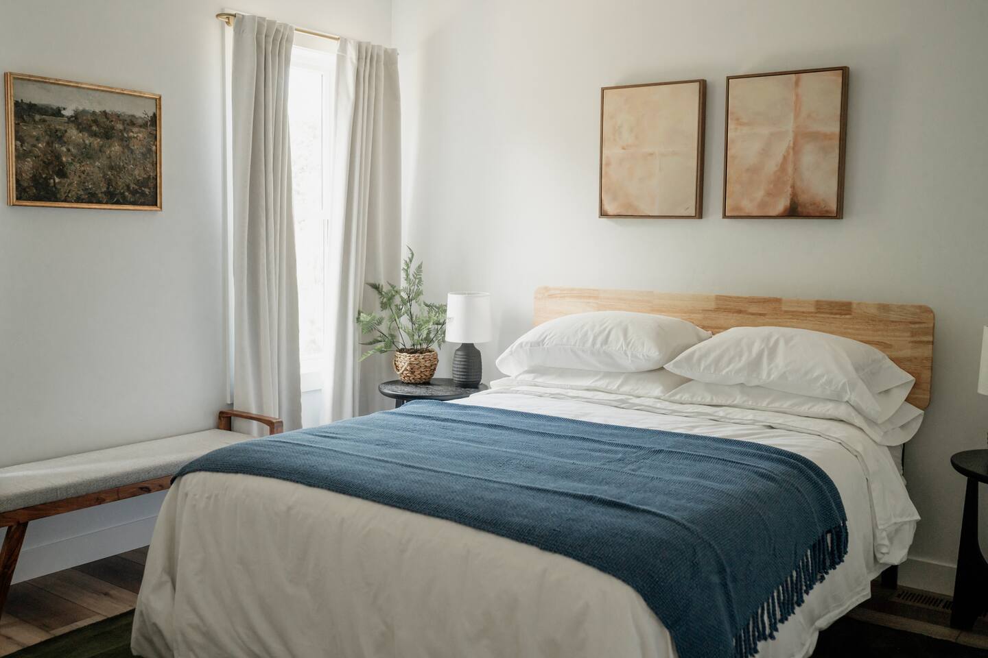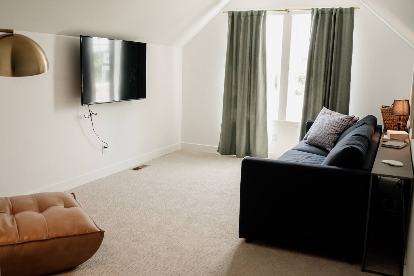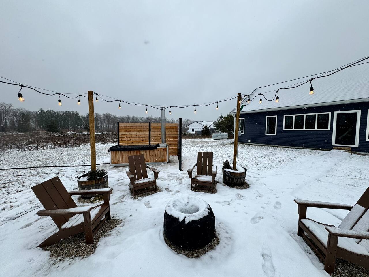Welcome to Retreat Azure, a serene and stylish retreat that seamlessly blends contemporary design with rustic charm. This spacious ranch home offers three tastefully decorated bedrooms and two and a half luxurious bathrooms, accommodating up to eight guests comfortably. As you step into the living area, you'll be greeted by an open-concept layout, where natural light floods in through large windows, highlighting the sleek lines and clean aesthetic of the space. The living room features plush sofas and a cozy fireplace, creating an inviting ambiance for relaxation and conversation. Adjacent to the living area is a fully equipped kitchen, boasting state-of-the-art appliances, ample counter space, and modern fixtures. Whether you're a culinary enthusiast or simply looking to whip up a quick meal, this kitchen provides all the amenities you need. The bedrooms are havens of tranquility, each thoughtfully designed with comfort in mind. Plush bedding, ample storage space, and carefully chosen decor create a serene atmosphere, ensuring a restful night's sleep. The master suite boasts a private ensuite bathroom, complete with a luxurious walk-in shower. The outdoor space is equally captivating with a spacious patio . Enjoy your morning coffee on the covered patio, basking in the fresh air and soaking in the panoramic views of the surrounding countryside. In the evenings, gather around the fire pit to roast marshmallows or taking in the starlit sky. Conveniently located, Retreat Azure provides easy access to nearby attractions, outdoor activities, and local amenities. Whether you're seeking a peaceful getaway or a base for exploration, Retreat Azure offers the perfect blend of comfort and style for a memorable stay. Book your stay at our modern ranch home and experience the tranquility, sophistication, and natural beauty that awaits you.
