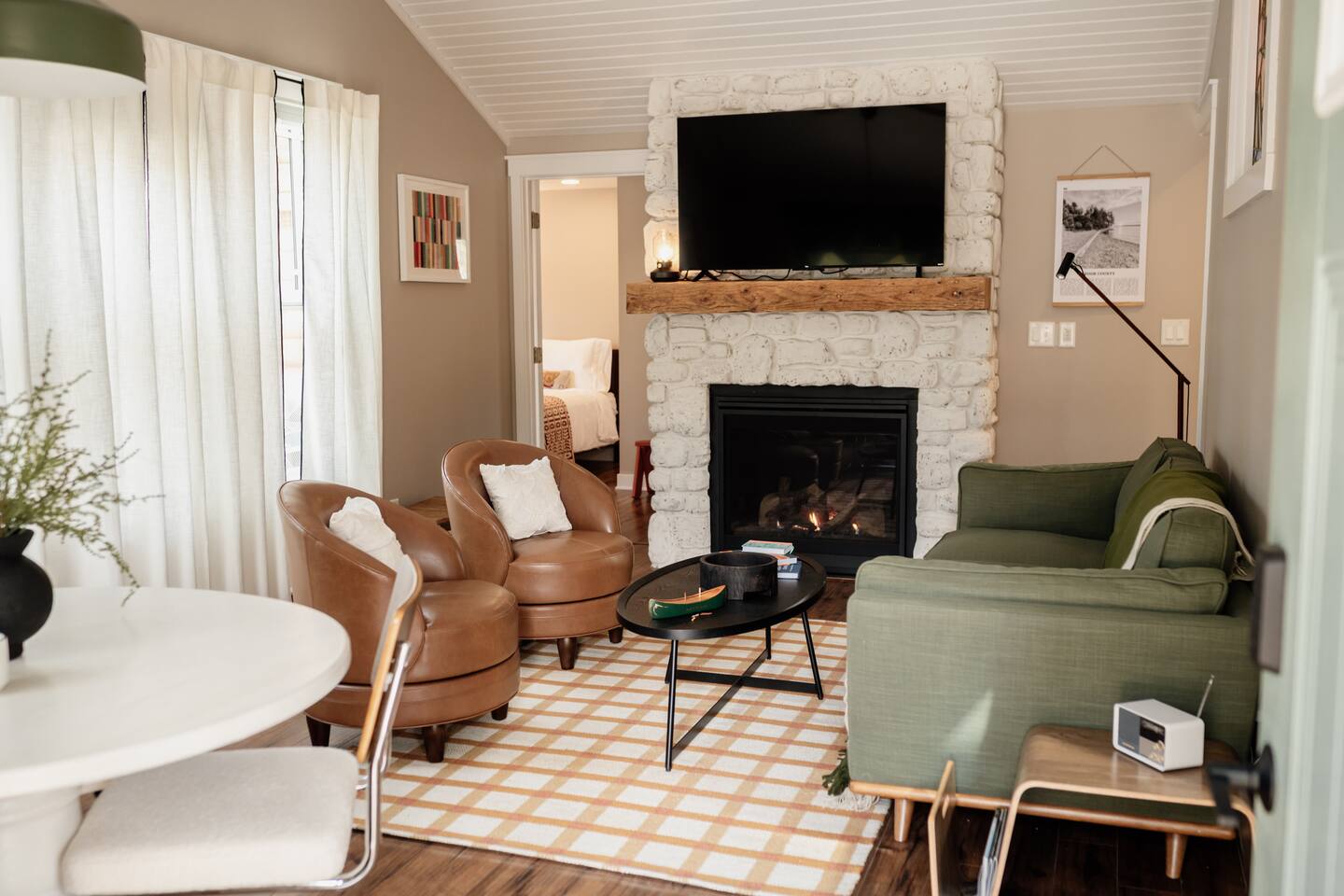 The lovely cabin is nestled in Sister Bay, a charming village located along the scenic shores of Lake Michigan in beautiful Door County, Wisconsin. Known for its picturesque landscapes, friendly community, and wide range of activities, Sister Bay offers a delightful retreat for visitors seeking a peaceful getaway. Nature enthusiasts will be captivated by the breathtaking beauty that surrounds Sister Bay. The village is a haven for outdoor lovers with its crystal-clear waters, sandy beaches, and lush forests. Take a leisurely stroll along the waterfront promenade, enjoy a picnic in Waterfront Park, or rent a kayak or paddleboard to explore the bay's tranquil waters. One of the highlights of Sister Bay is its vibrant marina. Watch sailboats and yachts gracefully glide across the water, creating a picturesque scene. Charter a fishing boat and try to catch walleye, salmon, or trout. Alternatively, hop on a scenic boat tour to explore the stunning shoreline and visit nearby islands like Washington Island. Sister Bay is also renowned for its charming downtown area. Traverse the streets with quaint shops, art galleries, and boutiques, where you'll discover unique treasures, handmade crafts, and local artwork. Treat your taste buds to a culinary adventure at the various restaurants and cafes offering delicious farm-to-table cuisine, fresh seafood, and Wisconsin's famous cheese. For those seeking outdoor adventures, Sister Bay provides ample opportunities. Explore the nearby Peninsula State Park, where you can hike scenic trails, bike through lush forests, or enjoy golf with panoramic lake views. In winter, the park transforms into a winter wonderland, offering cross-country skiing, snowshoeing, and ice fishing. Whether you're seeking relaxation, outdoor pursuits, or cultural experiences, Sister Bay has something for everyone. Immerse yourself in the natural beauty, savor the local flavors, and create unforgettable memories in this idyllic destination. Here are some places of interest you'll be looking to visit during your stay. β Sister Bay Marina (3 min away) β Sister Bay Beach (3 min away) β Sister Bay Bowl (3 min away) β Door County Creamery (3 min away) β Pirate's Cove Adventure Golf (4 mins away) β Al Johnsonβs Swedish Restaurant & Butik (4 min away) β Ephraim (10 min away) β Newport State Park (16 min away) β Peninsula State Park (17 min away) β Fish Creek (18 min away) β Cana Island Lighthouse (22 mins away) β Egg Harbor (28 min away) β Cave Point County Park (32 min away) β Washington Island Ferry Line (18 mins away) β Door County Maritime Museum (46 min away) β Potawatomi State Park (52 min away) β Green Bay (1h 20 min away) ***Distance times are calculated if traveling by car.